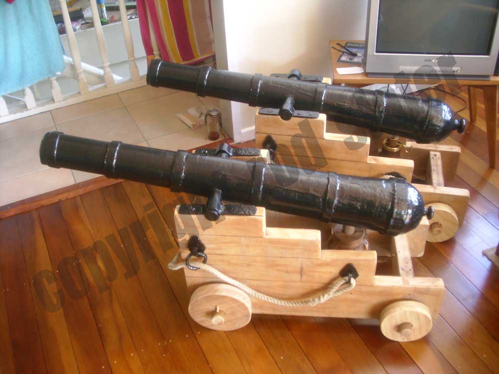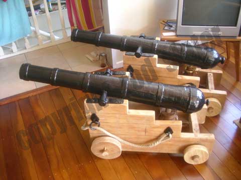 These sculptures would be a fun addition to a house that has everything. While they are authentic looking 17th century cannons, they are for indoor use only and not suitable for wet areas. If real, these would fire a 4” cannon ball.